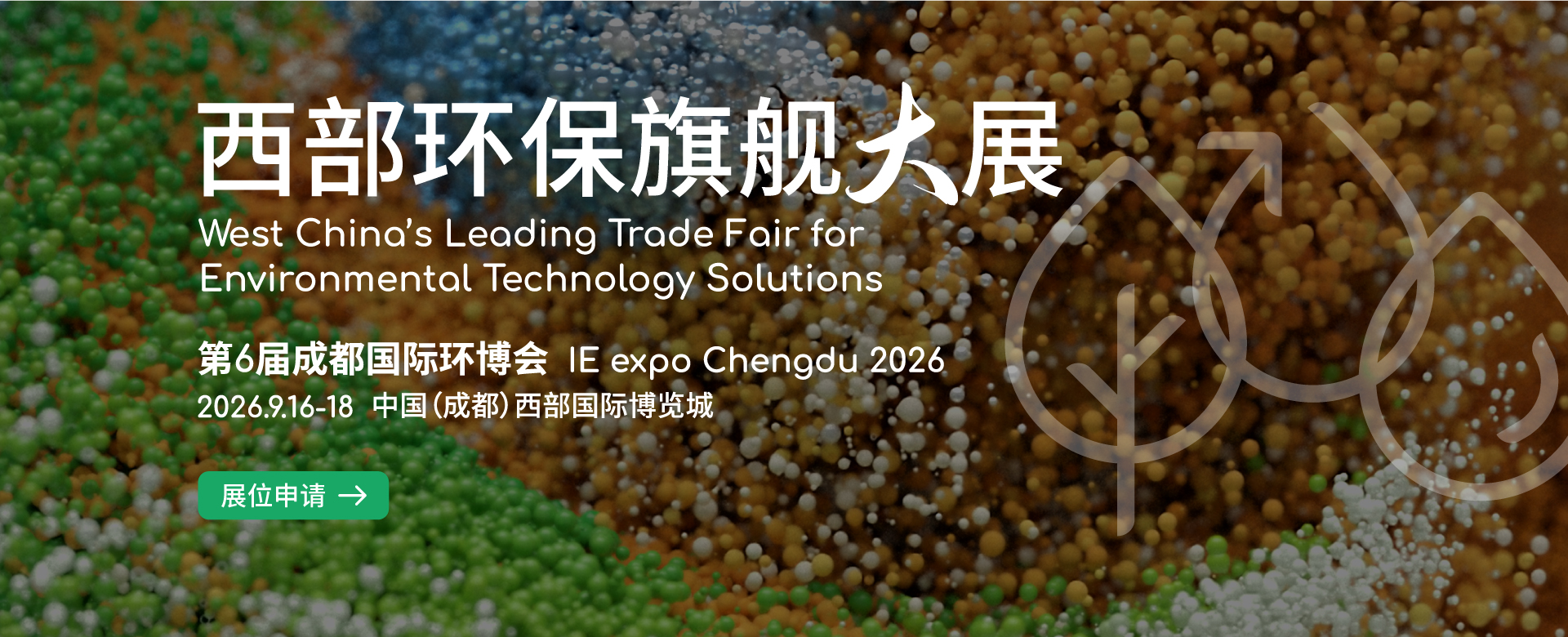 2019 年起,中国环博会正式进驻成都,为世界旗舰环保展慕尼黑IFAT 展拓展了中国中西部版图。中国环博会成都展已连续成功举办五届,已发展为中西部极具影响力的旗舰环保展,见证着中西部环保产业向新、向绿、向稳推进。 成都作为西部地区主要城市,地理位置优越,辐射性强,正引领着西部城市快速崛起。成都的环保产业显现出巨大的市场潜力和发展前景,近年来越来越多环保企业以成都为中心,构建起中西部业务矩阵。 2026年第6届中国环博会成都展将在成都西部国际博览城举办,展会将围绕各大细分领域、打通全产业链、发挥“高品质展示、高效率交易、强品牌影响力”的优势,为企业提供一站式交流平台。